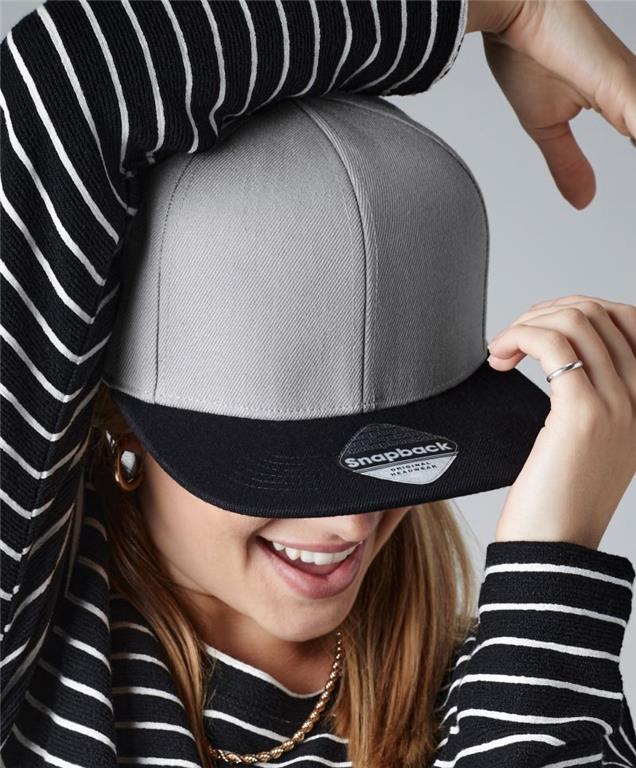 raven vizir, strukturiran sprednji del, šivana očesca, retro slog snapback, zapiranje s plastično zaponko, odstranljiva etiketa TearAway, ni primerno za pranje ali likanje, ni primerno za sušenje v sušilnem stroju ali za kemično čiščenje.