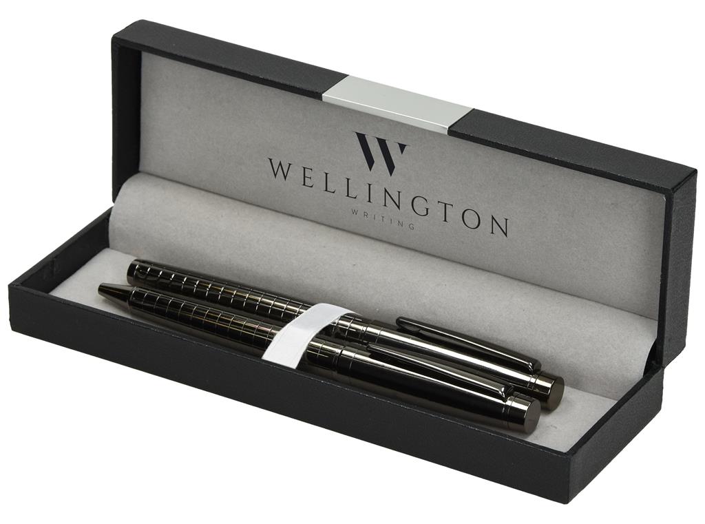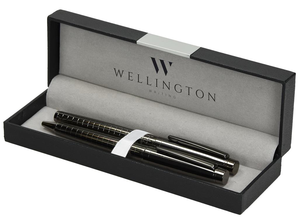 Luksuzni kovinski pisalni set YORK 1/2 kemični svinčnik in nalivno pero v darilni embalaži.