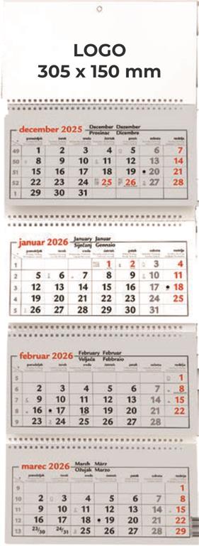 4-delni stenski koledar ŠPIRALA 810583 siva (GRE) Univerzalna