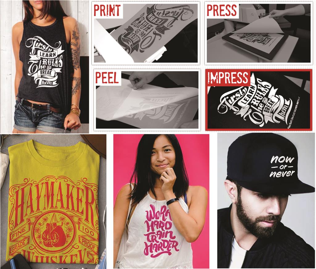 - NO-CUT sistem omogoča tiskanje po celotni površini tekstila z belo, kovinskimi, neon barvami