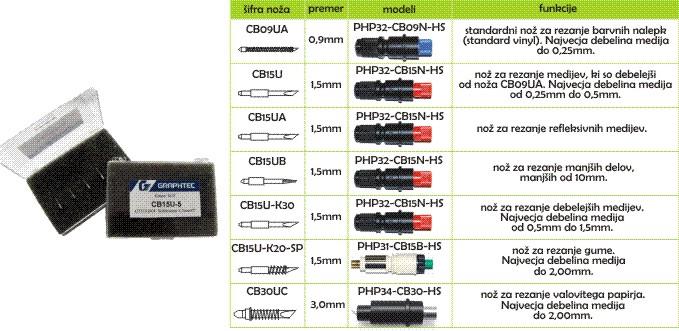 Nož za rezanje medijev ki so debelejši od 0,25mm. Največja debelina medija je 0,5mm. Primeren