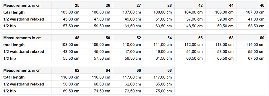 - Standardna dolžina na voljo do velikosti 68 (1861 X od 62 do 68)