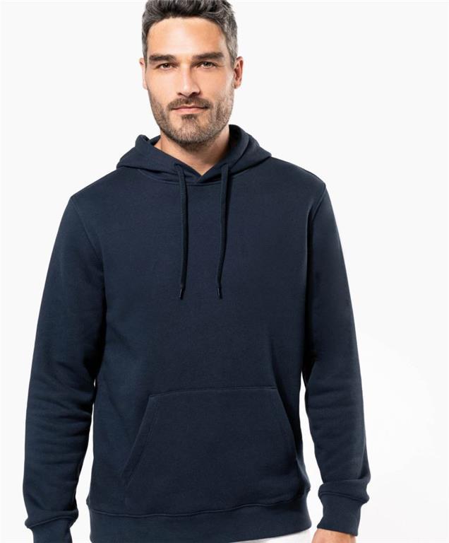 raven kroj, podložena kapuca z ravno vrvico v barvi puloverja, patent na rokavih in v pasu iz rebraste pletenine, kenguru žep, dvojni šivi na rokavih in robu, LSF (flis z nizkim krčenjem) za manjše krčenje, odporno proti muckanju, izdelano v Evropi, etiketa nevtralne velikosti, pralno na 40°, primerno za sušenje v sušilnem stroju pri nizki temperaturi,ni primerno za kemično čiščenje.