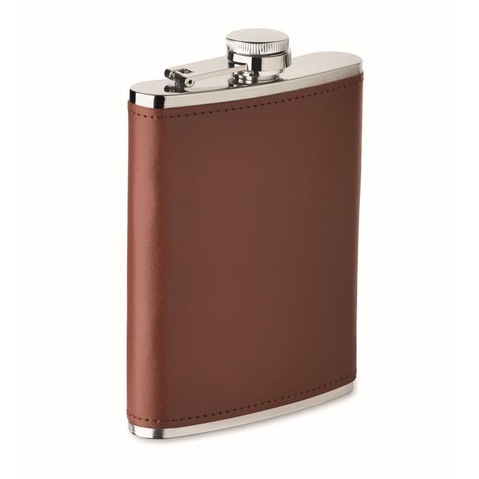 - Tanka steklenička iz nerjavečega jekla s prevleko iz PU-usnja. Prostornina 200 ml.