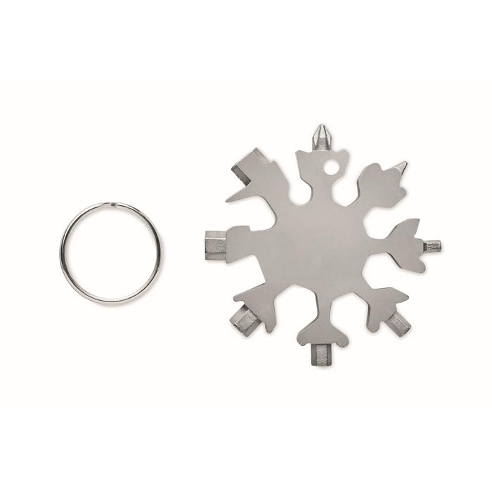 - Multifunktionstool 17-in-1 aus Edelstahl. In Form einer Schneeflocke. Inkl. abnehmbarem Metallring.