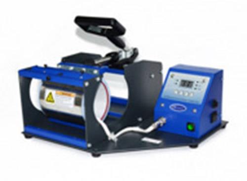 Eine horizontale Presse für Sublimation und Wärmetransferdruck auf Objekte mit einem Durchmesser von 5,0 - 7,5 cm
